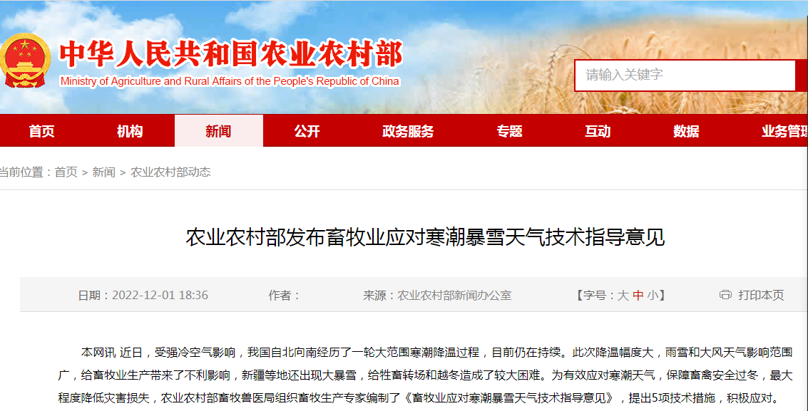 速看!農(nóng)業(yè)農(nóng)村部發(fā)布畜牧業(yè)應(yīng)對(duì)寒潮暴雪天氣技術(shù)指導(dǎo)意見